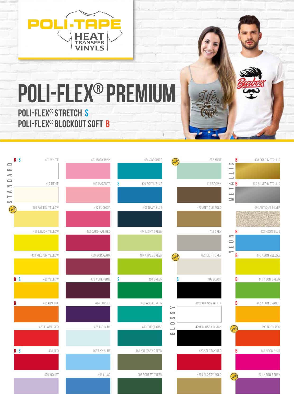 Poli - Flex Premium ist geeignet zur Übertragung auf Textilien wie Baumwolle, Mischgewebe aus Polyester/Baumwolle und Polyester/Acryl.