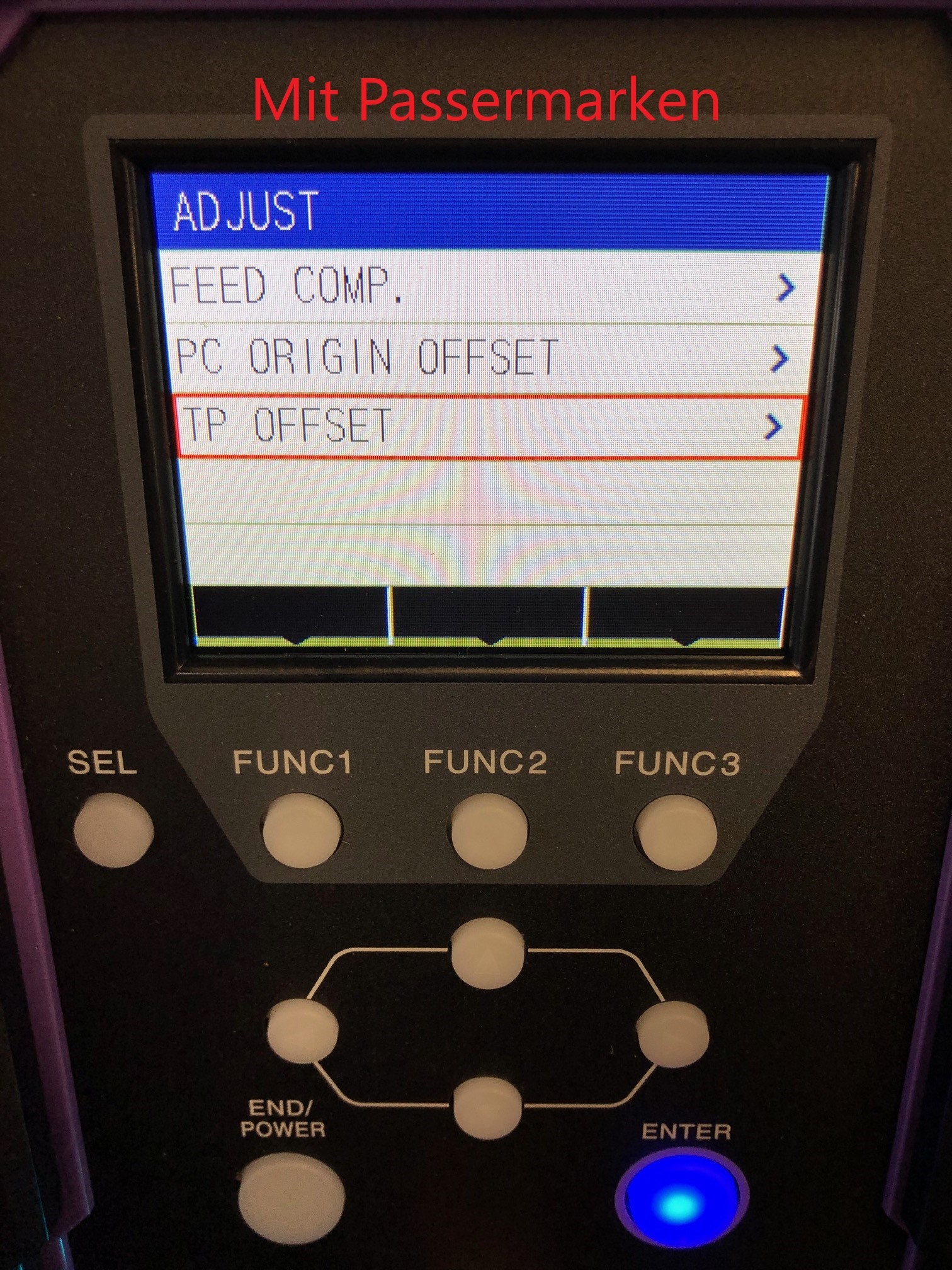 1. Mit Passermarken -> TP Origin | Ohne PM -> PC Origin (wenn mehr als 2 Werte angezeigt werden, ist man im falschen Menü)