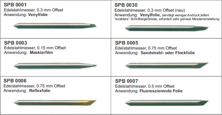 Übersicht Plottermesser & Offset Einstellungen