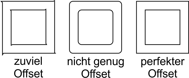 Eine Übersicht, wie der Testschnitt bei einem zu hohen bzw. zu niedriegen Offsetwert aussieht: