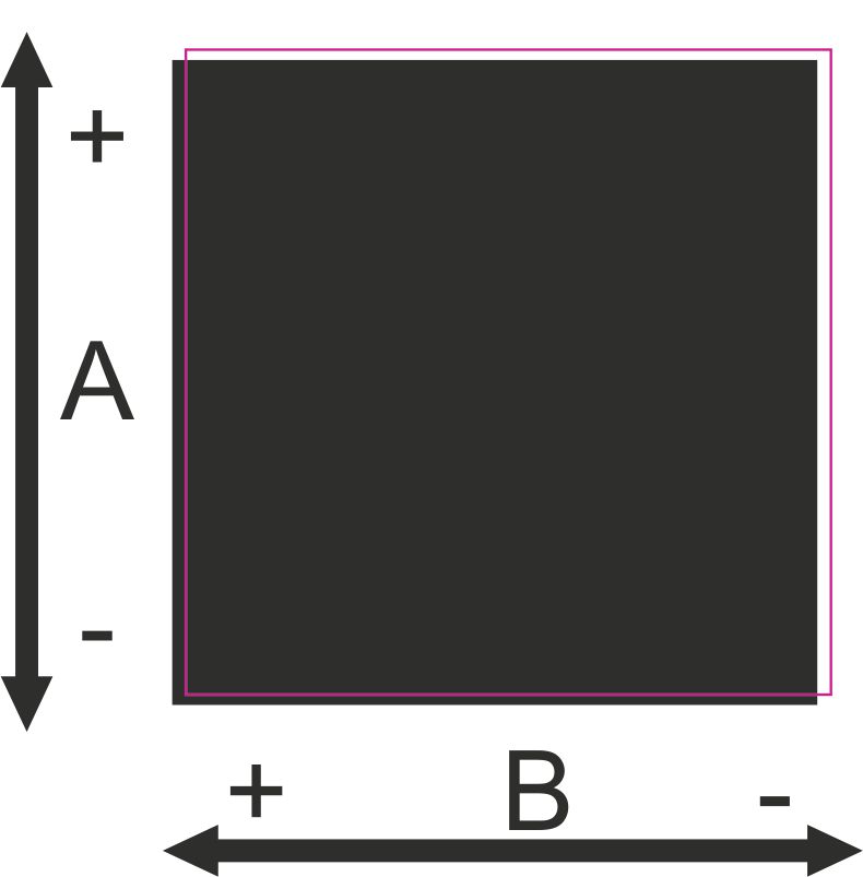 Wenn das Quadrat an der oberen Seite einen weißen Rand oder Blitzer hat, muss der Schnitt in A-Richtung in den negativen Bereich/ Minusrichtung (zB. von A=0,0 -> A=-0,5) versetzt werden.