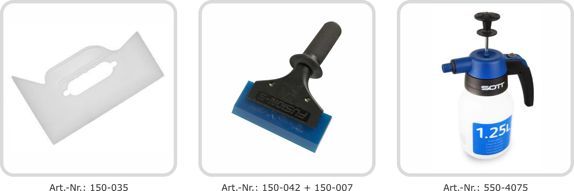Empfohlenes Zubehör, welche die Flachglasverlegung vereinfacht: